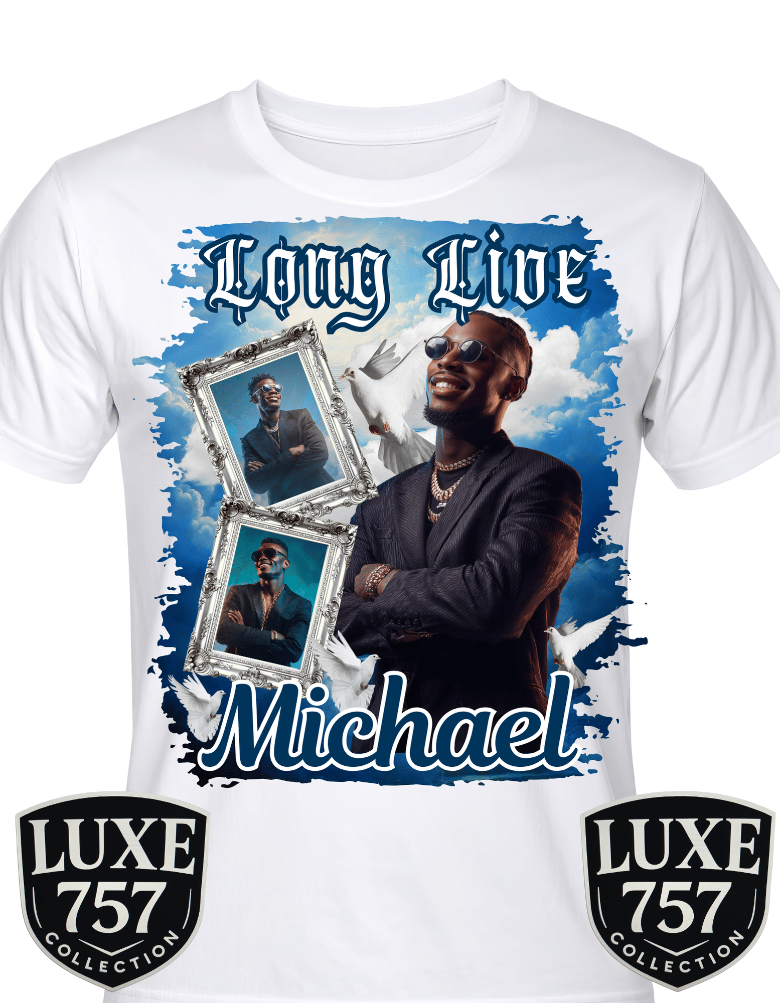 Honor your loved one with a fully customized Love Live Memorial Shirt. Our shirts are professionally printed with high-resolution artwork and your personal photos, name, and dates. Available in short sleeve t-shirts, long sleeve shirts, and sweatshirts with multiple color options.